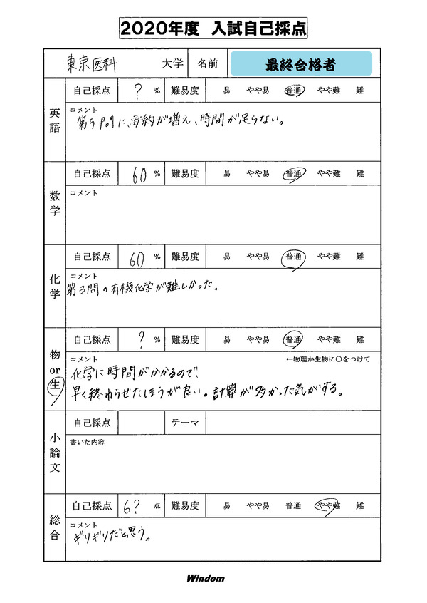 非常に特徴のある医大のひとつなので、学力が備わってから過去問対策で癖を読み取りたいものです。ちなみに東京医科の過去問対策は最後、最後でいいかと思います。