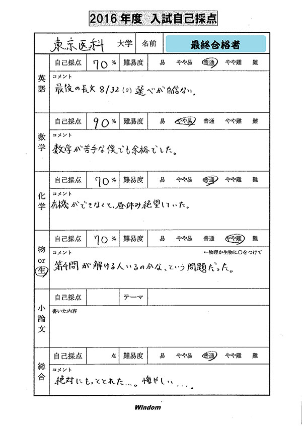 ウインダム医学部入試解説員から