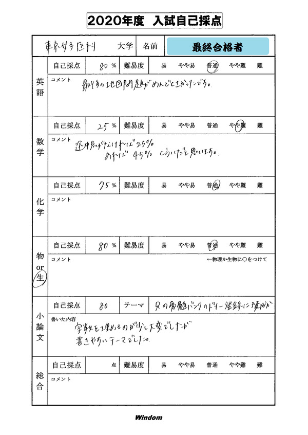 | 標準 | 100 | 記述式/マーク式 | 理科120 |