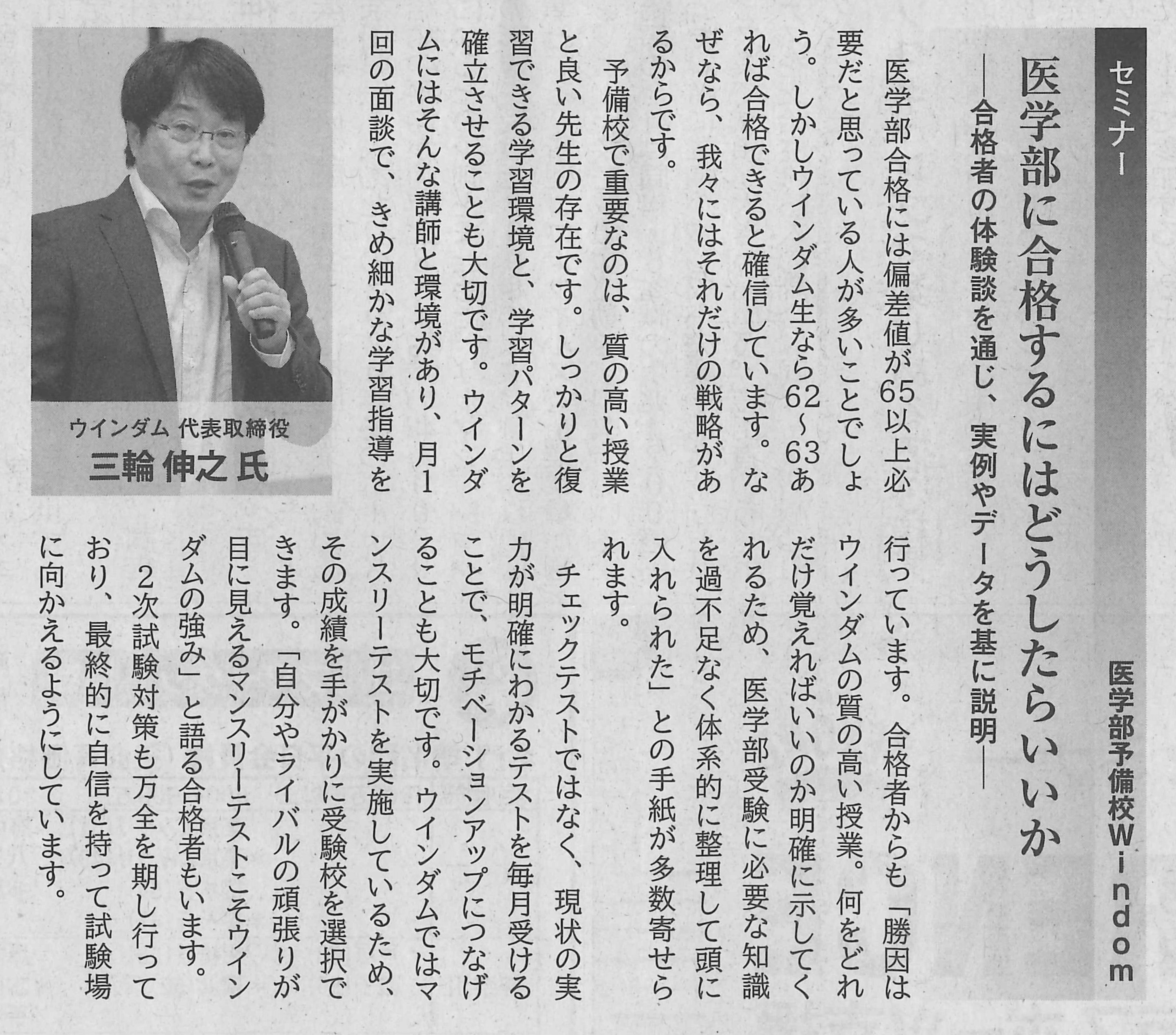 2020/10/17(土)・18(日)に開催された2020日経医学部進学フォーラムのセミナーにて、当校代表・三輪がセミナーに登壇いたしました。