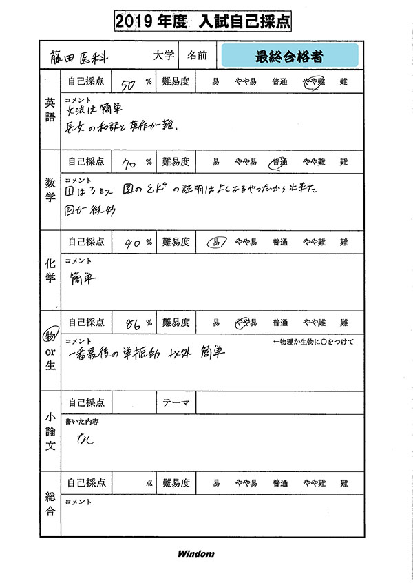 | やや易 | 100 | 記述式 | 理科120 |