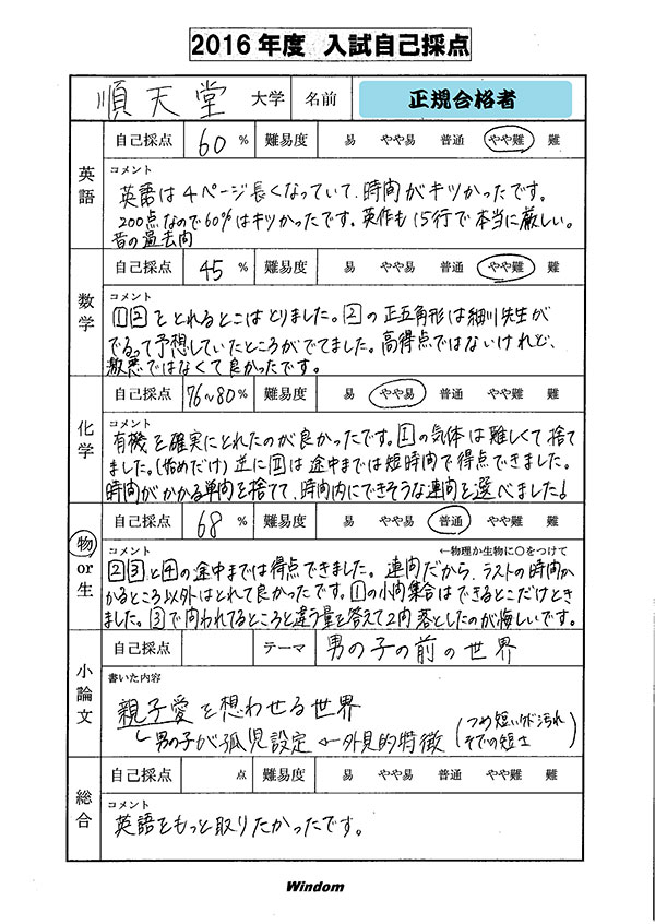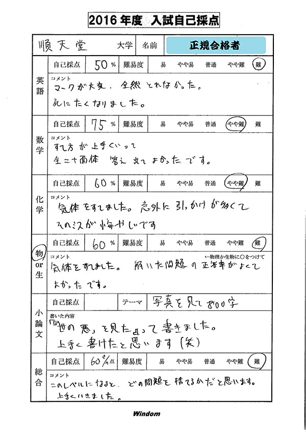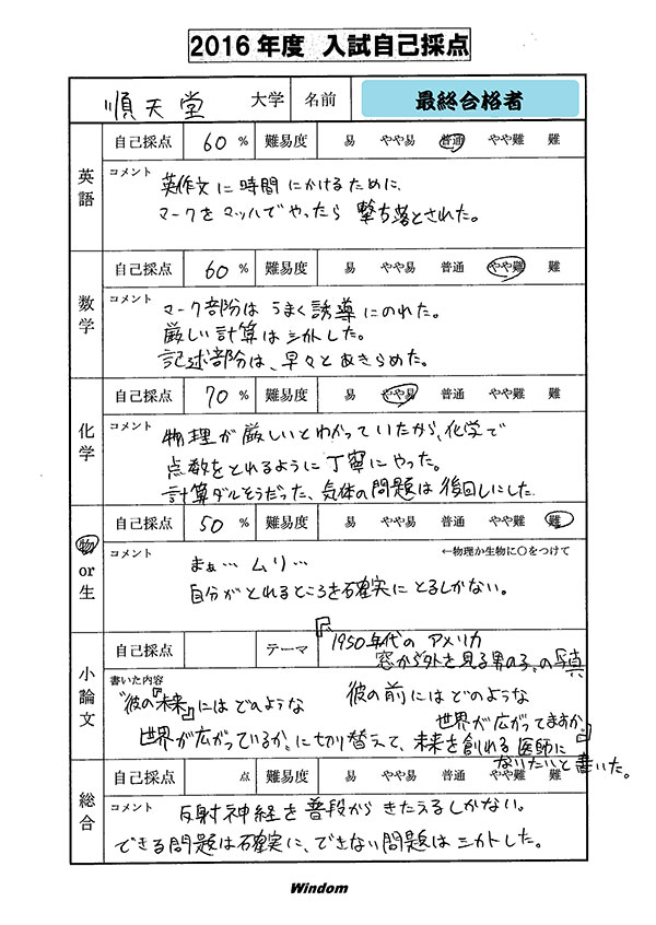ウインダム生の合格者コメント・自己採点
